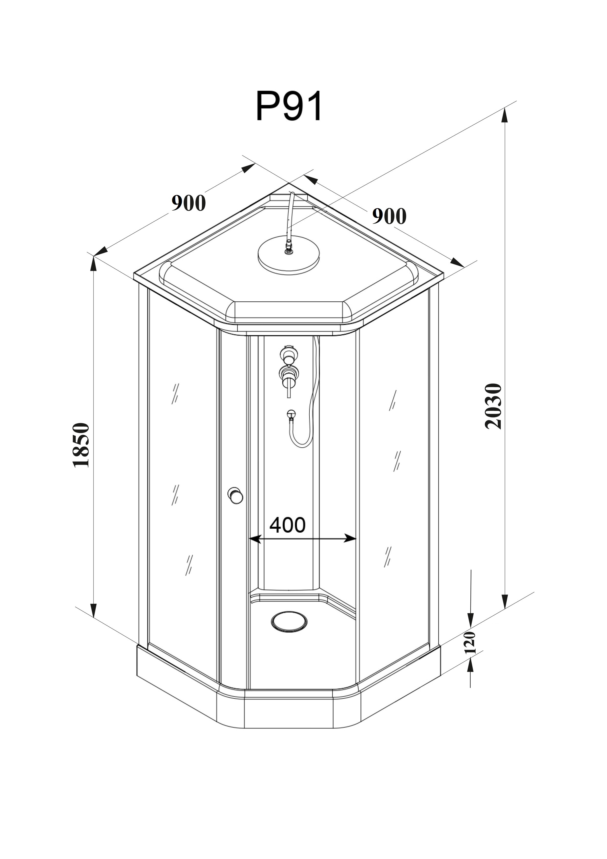 Душевая кабина P91 бренда PARLY, размер 90х90х215см