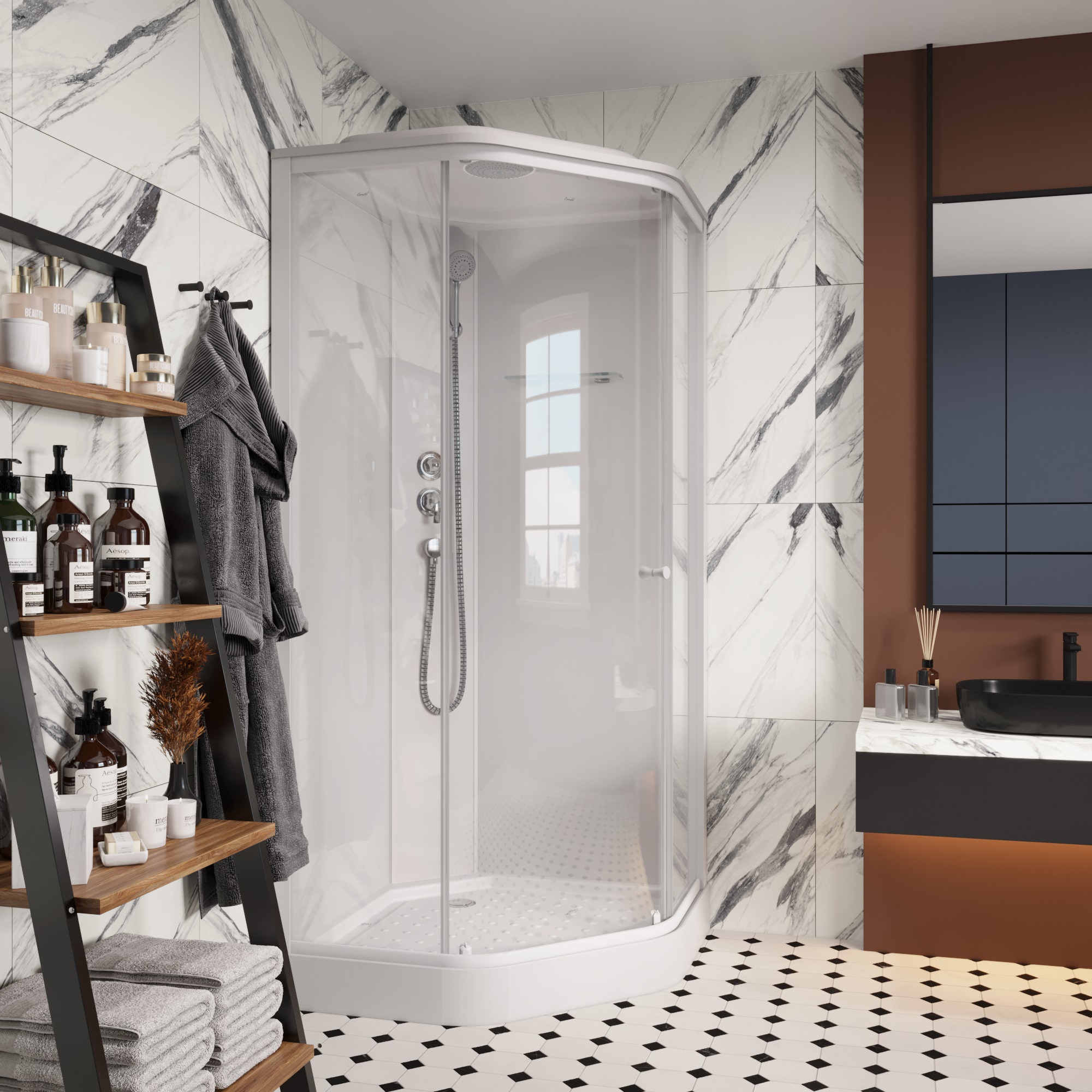 Поддон: белый, низкий (12 см), трапециевидный, рифленый.