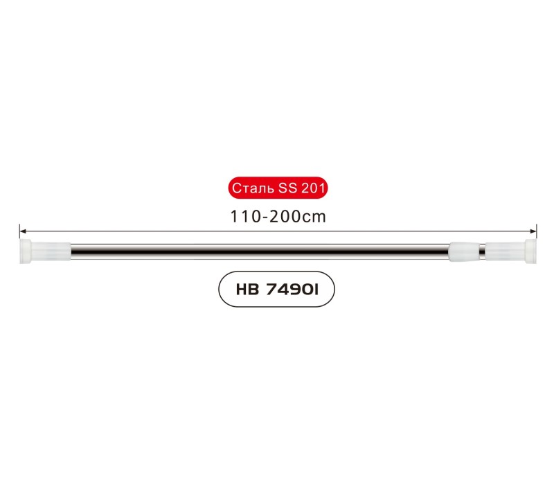 Карниз телескопический бренда Haiba. Имеет регулировку по длине от 110 до 200 см. Изготовлен из стали стандарта SS201, что говорит о надежности изделия.