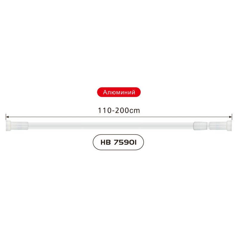 Карниз телескопический бренда Haiba. Имеет регулировку по длине от 110 до 200 см. Изготовлен из алюминия, что говорит о практичности изделия.