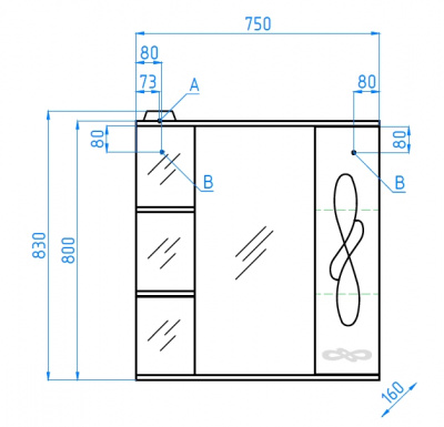 - Зеркальный шкаф "Венеция" со встроенным светильником (выписывается отдельно, выбирайте вариант поставки)