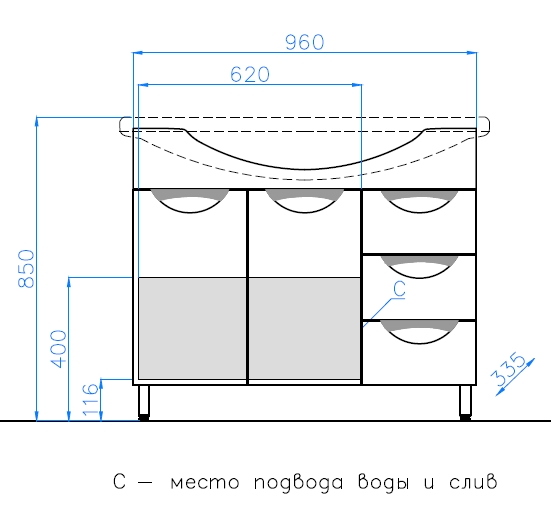 - Тумба-умывальник "Жасмин 100" 2 распашных дверцы и 3 выдвижных ящика