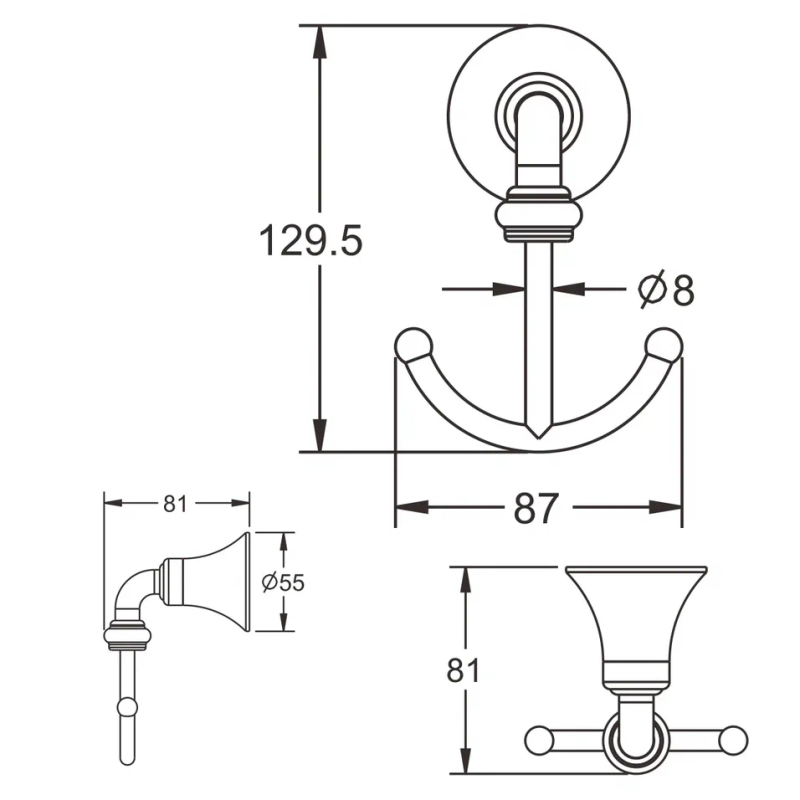 Крючок для ванной комнаты двойной Rose RG1221, хром