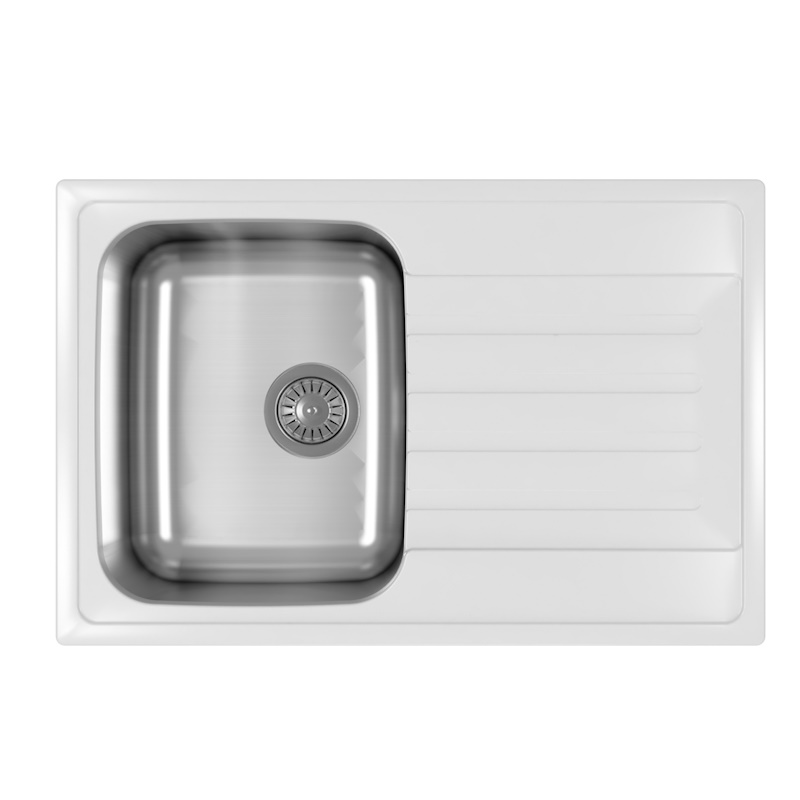 Материал чаши мойки - нержавеющая сталь марки AISI 304, толщина 0,8 мм.