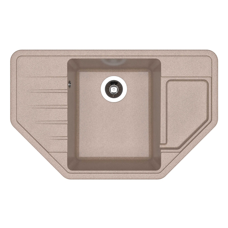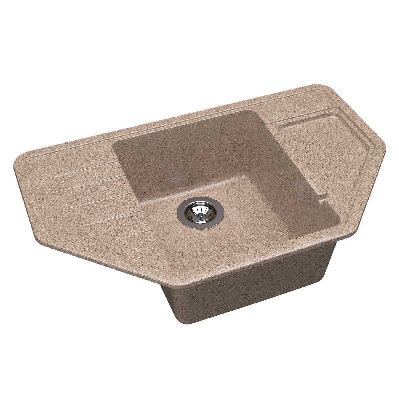 Угловая мойка с четкими контурами. Углубленное крыло. Гармоничный дизайн.