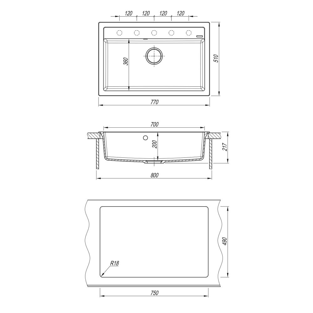 Мойка для монтажа на столешницу с прямоугольной чашей для шкафа 80 см. Универсальная форма мойки подойдет под любой дизайн кухни. Увеличенный размер чаши делает мойку невероятно удобной в эксплуатации.