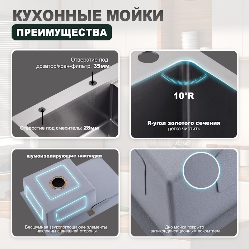 Кухонные мойки Splenka отличаются практичностью и современным дизайном. Прямоугольные и квадратные раковины для кухни из нержавейки станут идеальным решением для любой кухни. Нержавеющая врезная мойка - отличный выбор для тех, кто ценит качество и долговечность. Изготовлена из качественной нержавеющей стали, которая не боится ни бытовой химии, ни царапин. Металлическая раковина для кухни добавит вашей кухне современности и функциональности.