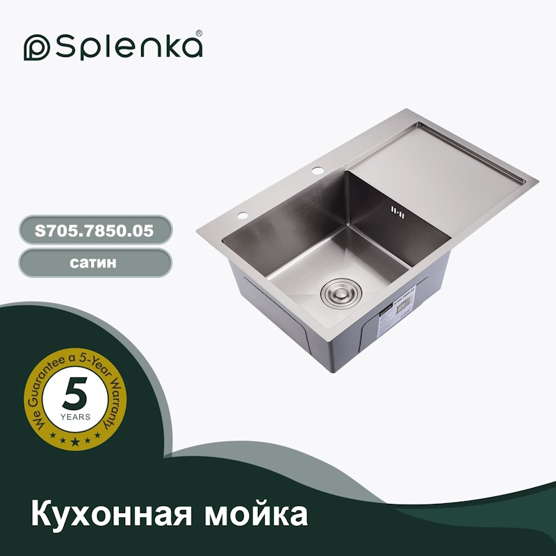 Кухонная мойка Splenka S705.7850.05, сатин. Размер - 780*500*220мм.