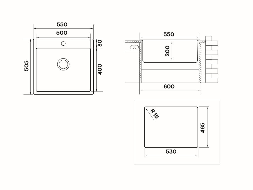 Матовая поверхность TEB550.505 достигается применением брашинга (шлифование специальными щётками), благодаря чему на такой поверхности не будут видны маленькие царапины, возникающие в процессе длительной эксплуатации и изделие не потеряет привлекательность внешнего вида. Толщина стали мойки TECHNO составляет 1 мм, что делает её более надежной и долговечной.