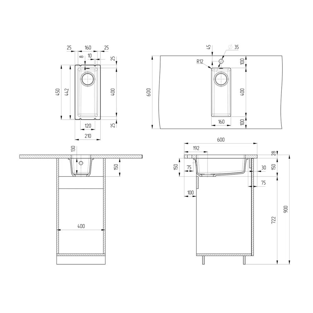 Кухонная мойка ULGRAN Quartz Underground 160 – это односекционая модель подстольного монтажа, изготовленная на современном автоматизированном оборудовании из высококачественных кварцевых композитов по инжекционной технологии (литье под давлением).