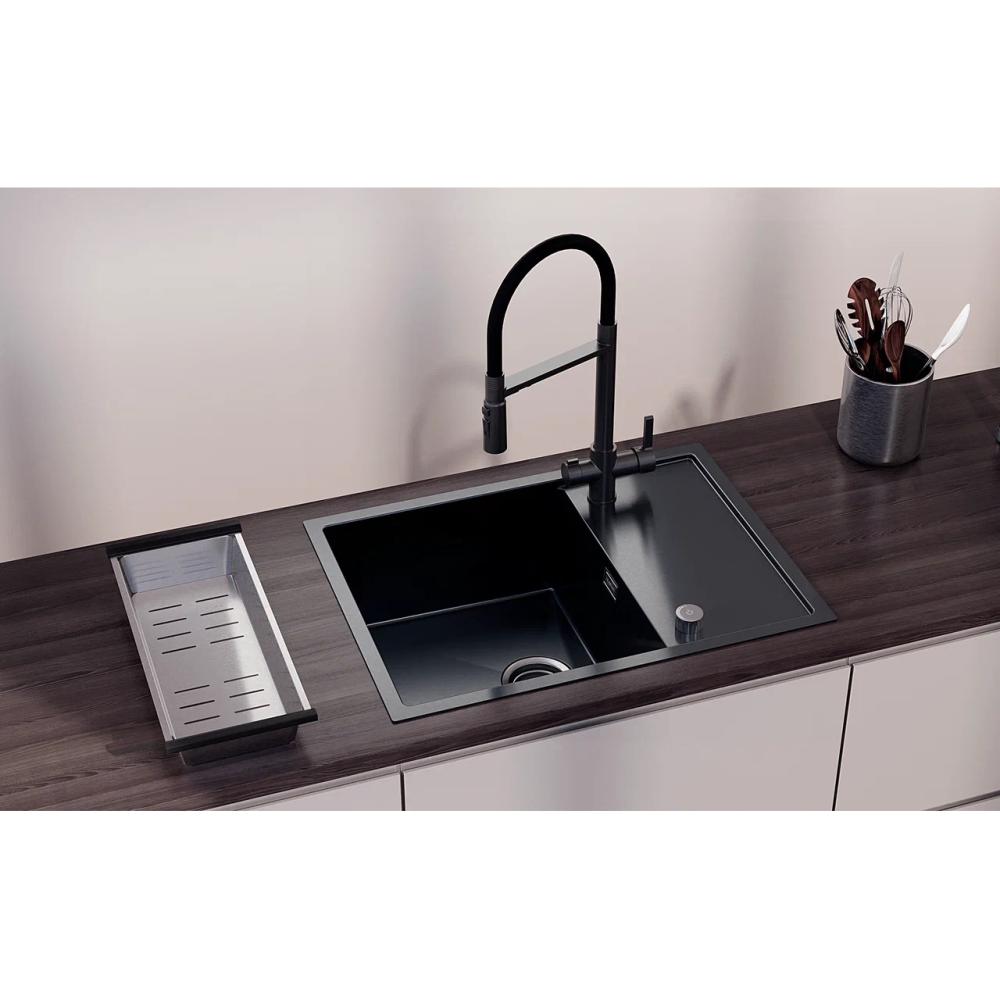 Кухонная мойка Ulgran Steel 680x500, вороненая сталь