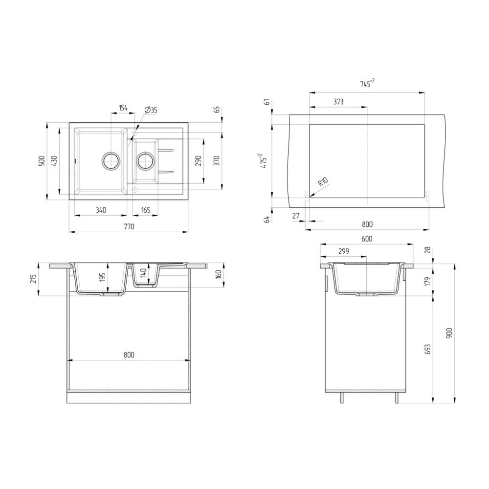 ULGRAN U-205 - двухсекционная реверсивная кухонная мойка, с основной чашей и коландером. Данная мойка устанавливается в шкаф шириной от 80 см и является оборачиваемой. В комплектацию входит сливная арматура с гофротрубой, технический паспорт и гарантийный талон. Существует возможность установки дозатора ULGRAN или других аксессуаров - доп. отверстие в таком случае потребитель делает самостоятельно с помощью фрезы Форстнера (не входит в комплектацию и приобретается отдельно). Заводская гарантия составляет 2 года, а срок службы данной мойки, при соблюдении основных правил ухода за ней, составляет более 10 лет.