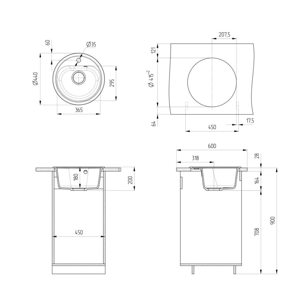 ULGRAN U-700 - классическая компактная круглая кухонная мойка с отверстием под смеситель. Данная мойка устанавливается в шкаф шириной от 45 см и прекрасно подходит для малогабаритной кухни. В комплектацию входит сливная арматура с гофротрубой, технический паспорт и гарантийный талон. Существует возможность установки дозатора ULGRAN слева от смесителя - доп. отверстие в таком случае потребитель делает самостоятельно с помощью фрезы Форстнера (не входит в комплектацию и приобретается отдельно). Заводская гарантия составляет 2 года, а срок службы данной мойки, при соблюдении основных правил ухода за ней, составляет более 10 лет.