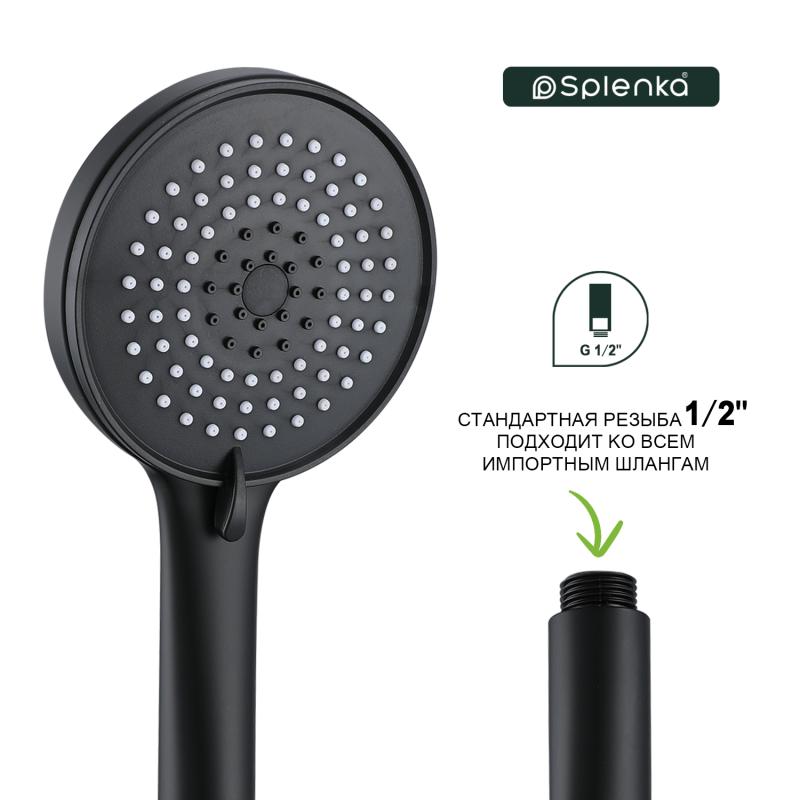 S450.05.06 Лейка для душа из авс-пластика в черном цвете, совместима со всеми шлангами. 3-режима