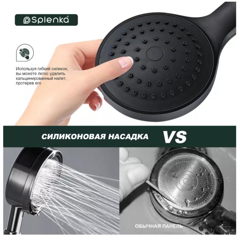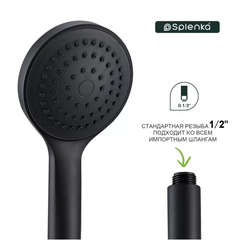S450.08.06 Лейка для душа из авс-пластика в черном цвете, совместима со всеми шлангами. 1-режим