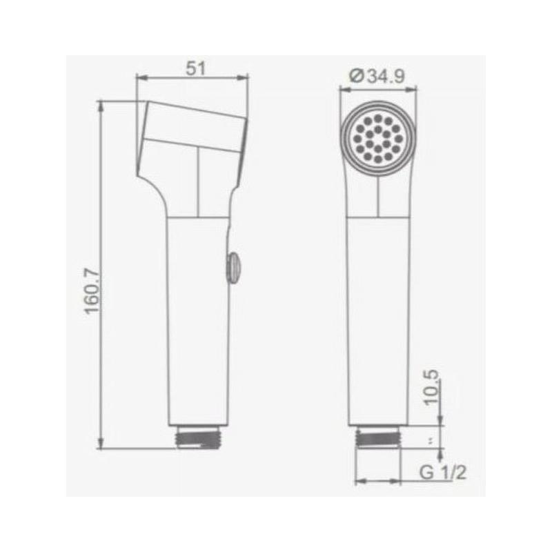 R460.05.06 Лейка гигиеническая с клавишей регулировки напора воды, универсальное присоединение под любой шланг.