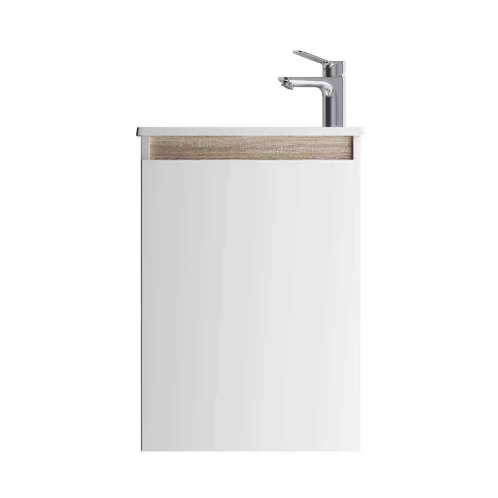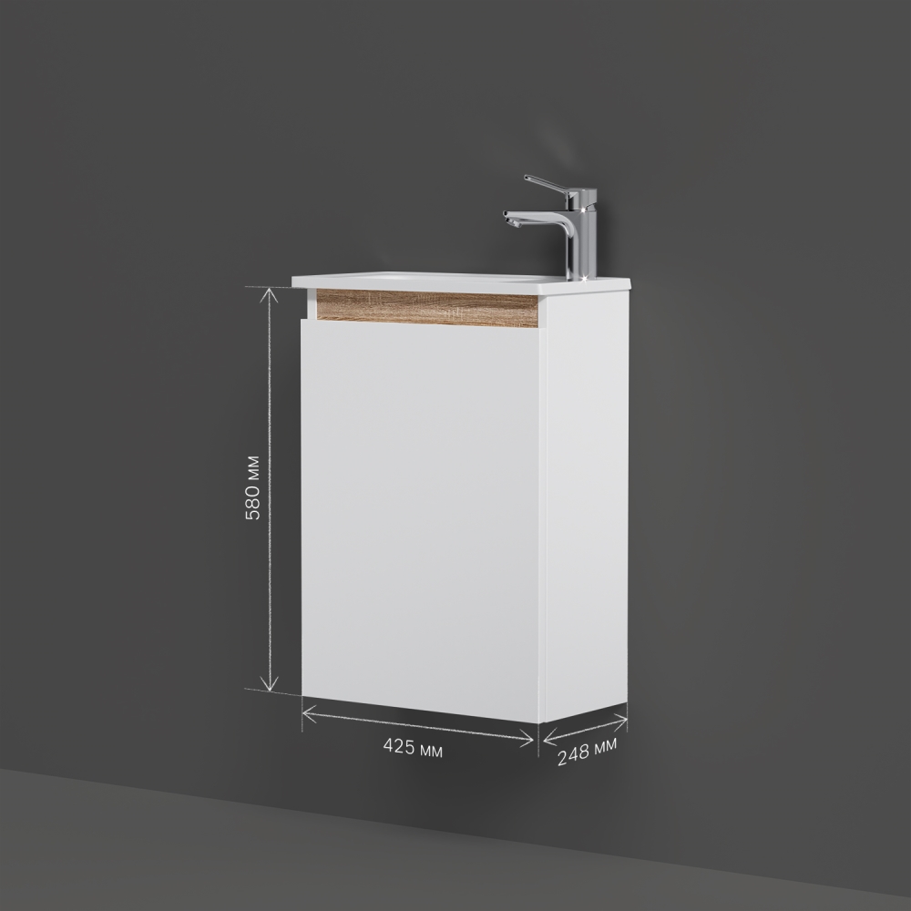 цвете Anthracite и имеет противоскользящее покрытие. Встроенная керамическая раковина белоснежного цвета оснащена специальным бортиком для защиты от пролива воды за мебель.
