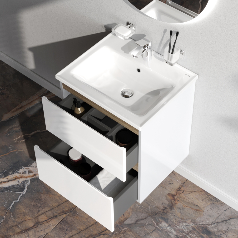 M85AFHX0552WG X-Joy, База под раковину, подвесная, 55 см, 2 ящика, белый глянец Am.Pm