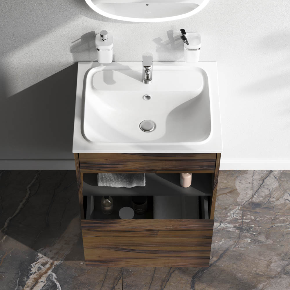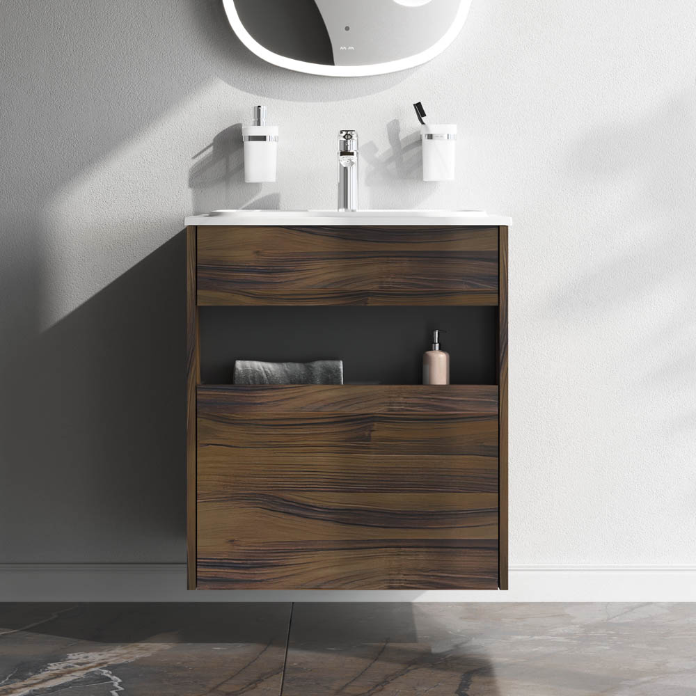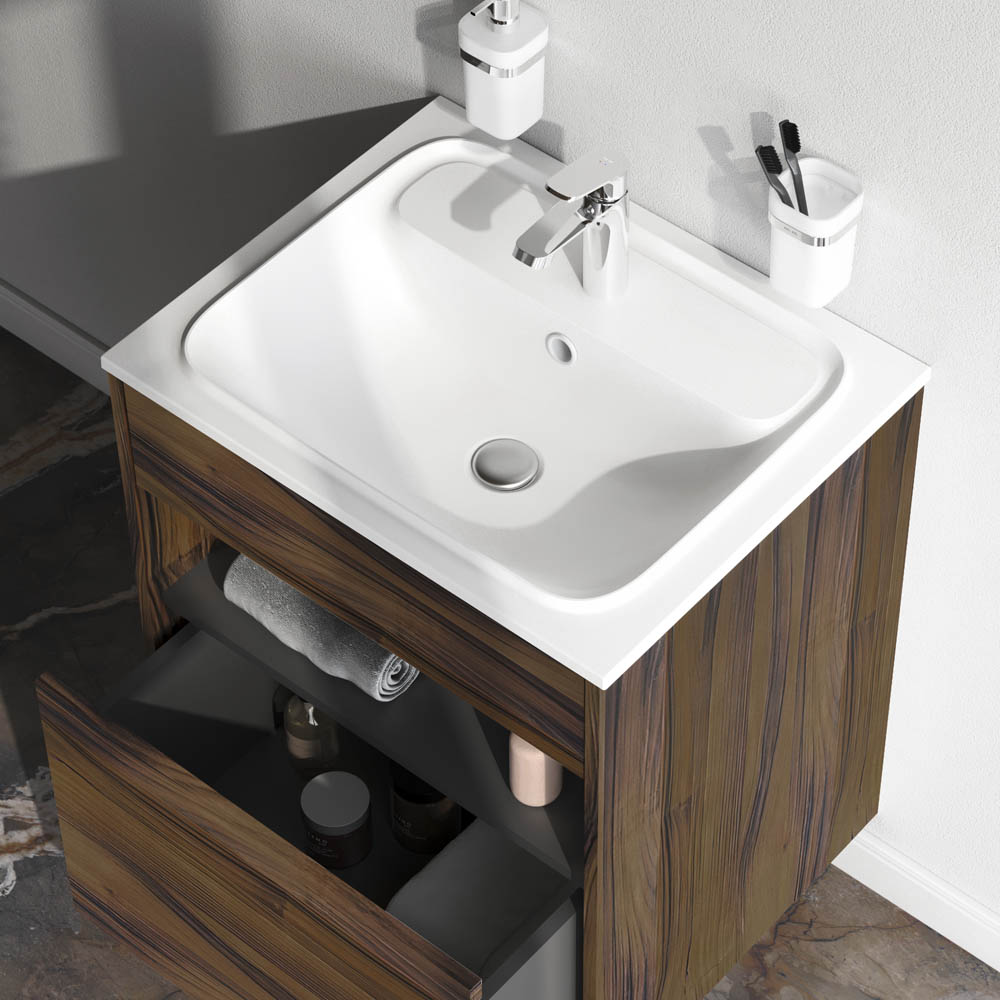 - База под раковину с нишей и 1 ящиком, 60 см, дуб крафт, универсальная