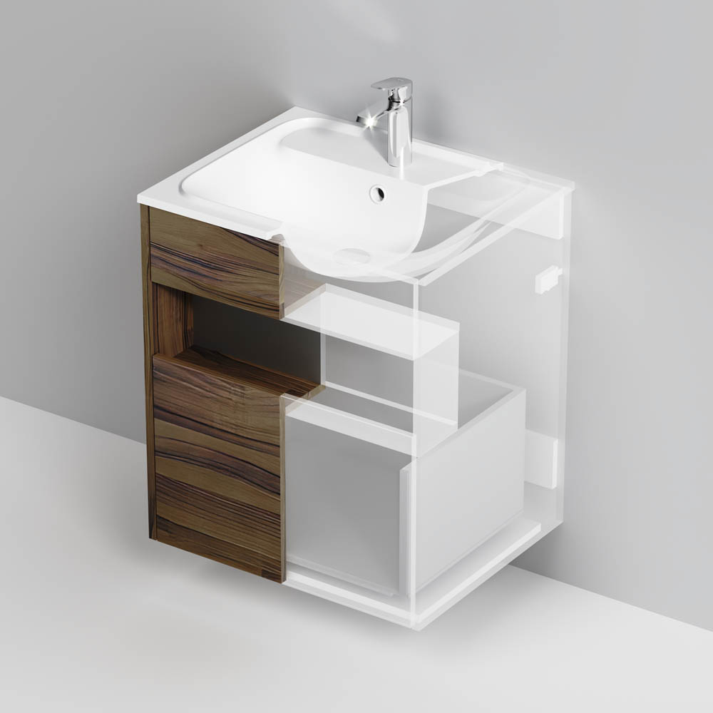 Удобный выдвижной ящик и вместительная открытая ниша позволяют хранить все необходимые средства под рукой. Невероятно мягкое открытие и закрытие благодаря направляющим скрытого монтажа с системой soft close.