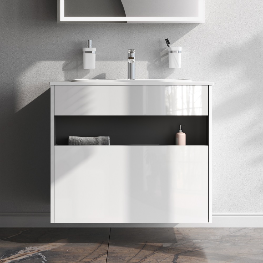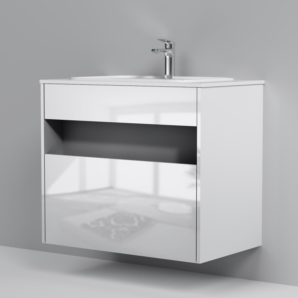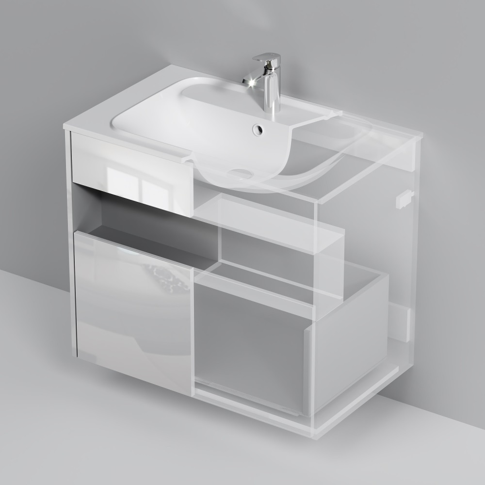- База под раковину с нишей и 1 ящиком, 80 см, белый глянец, универсальная
