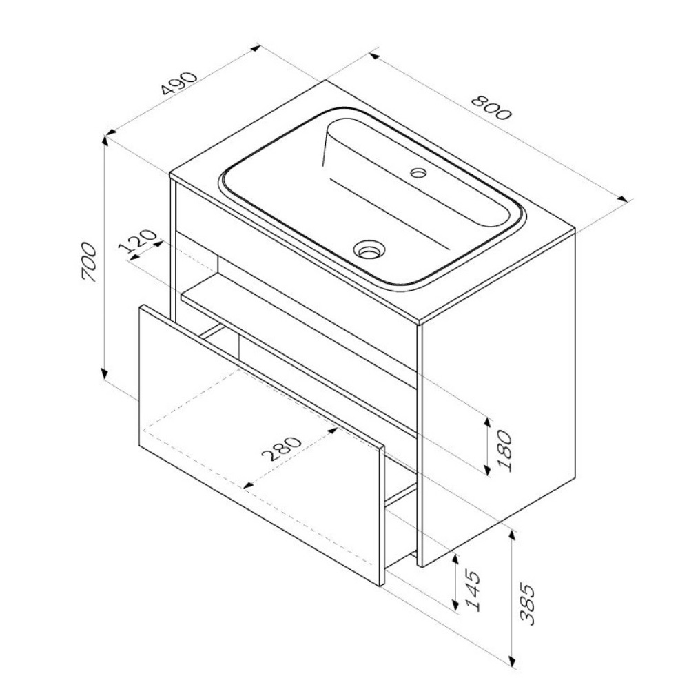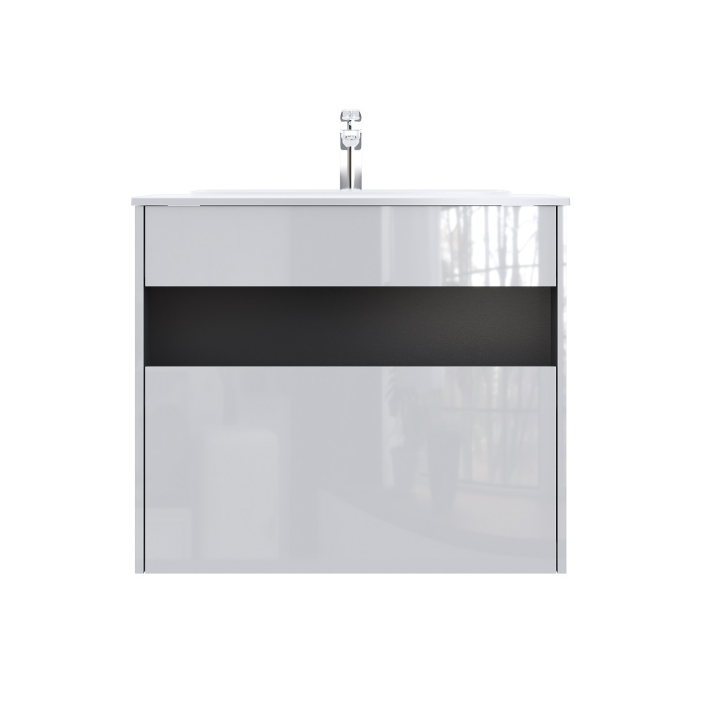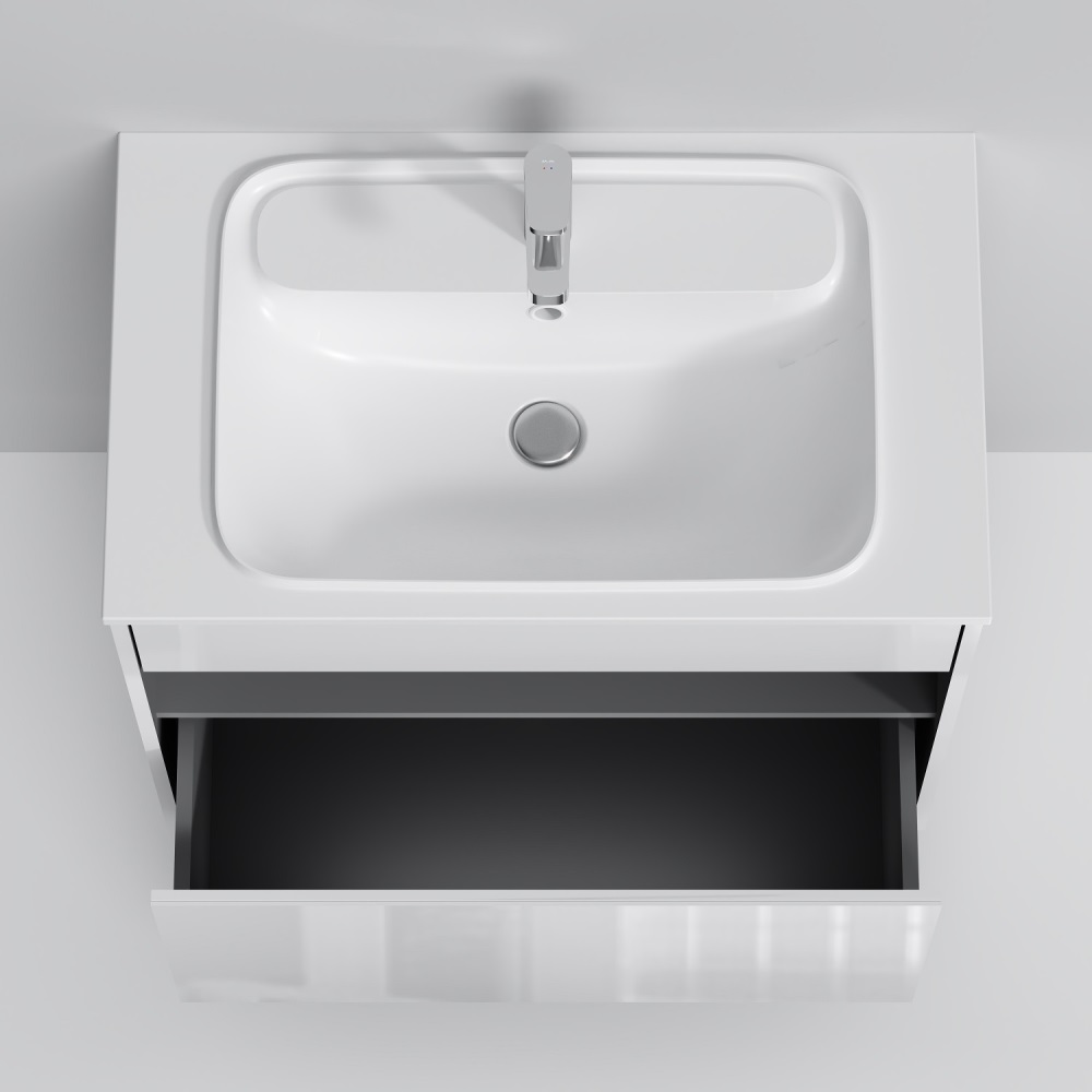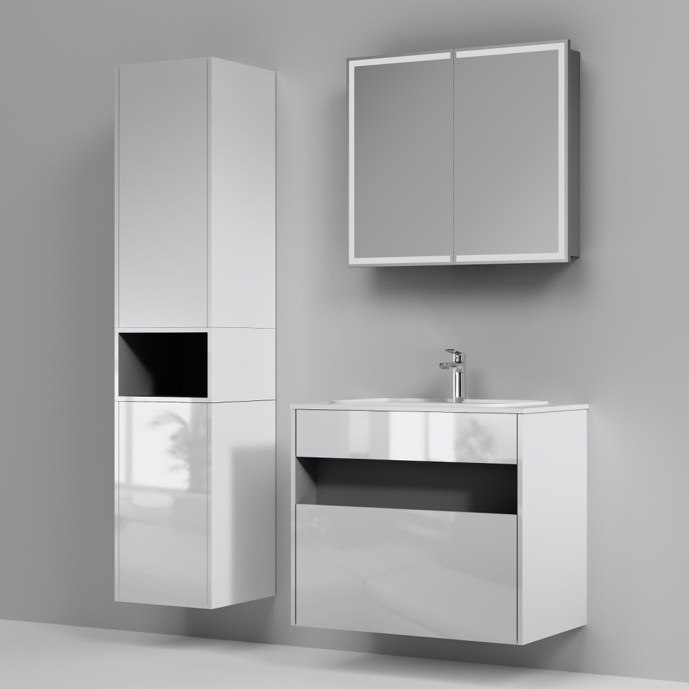 - База под раковину с нишей и 1 ящиком, 80 см, белый глянец, универсальная