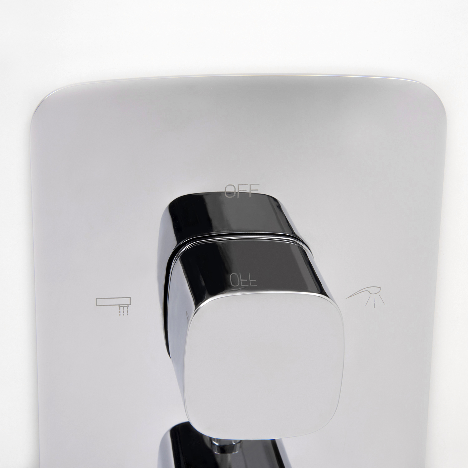 Работает при нулевом давлении. Для переключения на душ или излив необходимо повернуть переключатель в любую сторону на 90°.