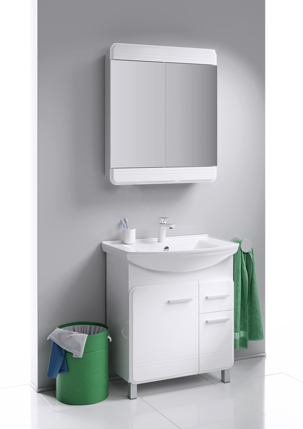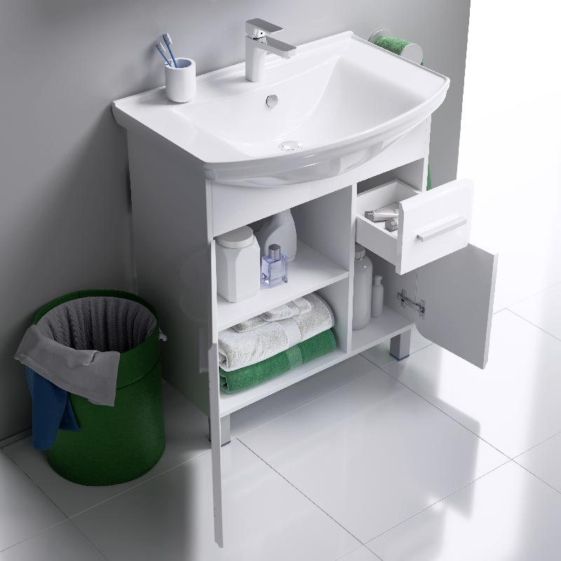 - Напольная тумба с двумя дверьми и одним ящиком с умывальником