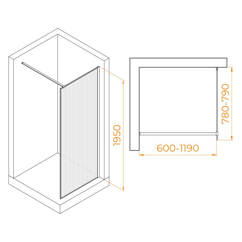 Высота перегородки составляет 195 см, что обеспечит комфортную эксплуатацию даже для самых высоких пользователей. При этом, данная модель обладает высокой герметичностью 3 класса, что предотвратит протекание воды вне границ душевой зоны.