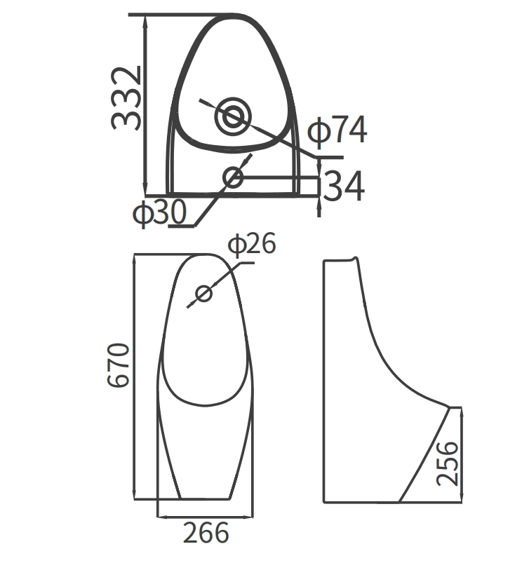 Писсуар подвесной Arrow, 332x266x670, подвод воды сзади, расход 3 л.