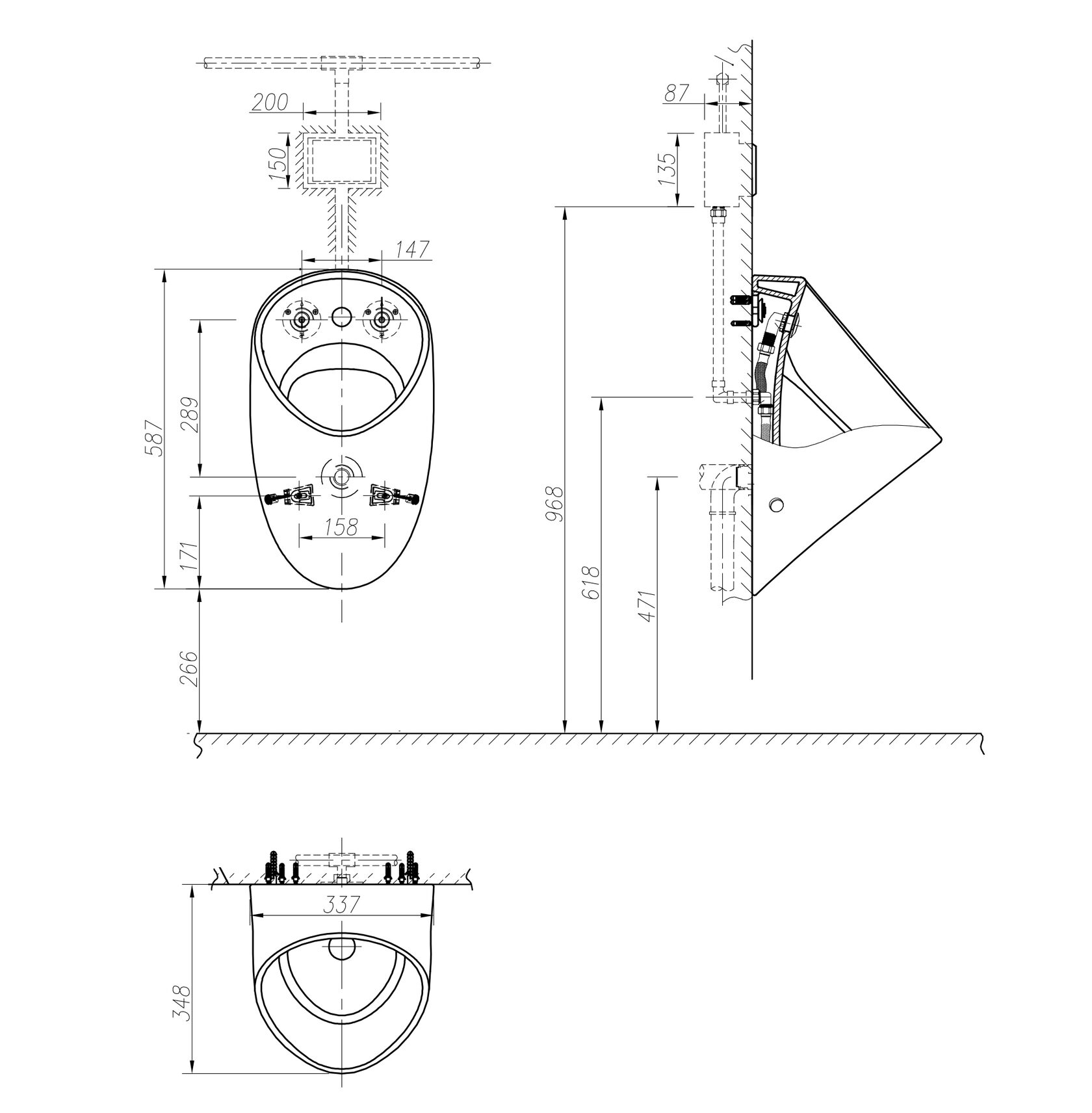 Писсуар подвесной Arrow, 348x337x587, подвод воды сзади, расход 3 л.