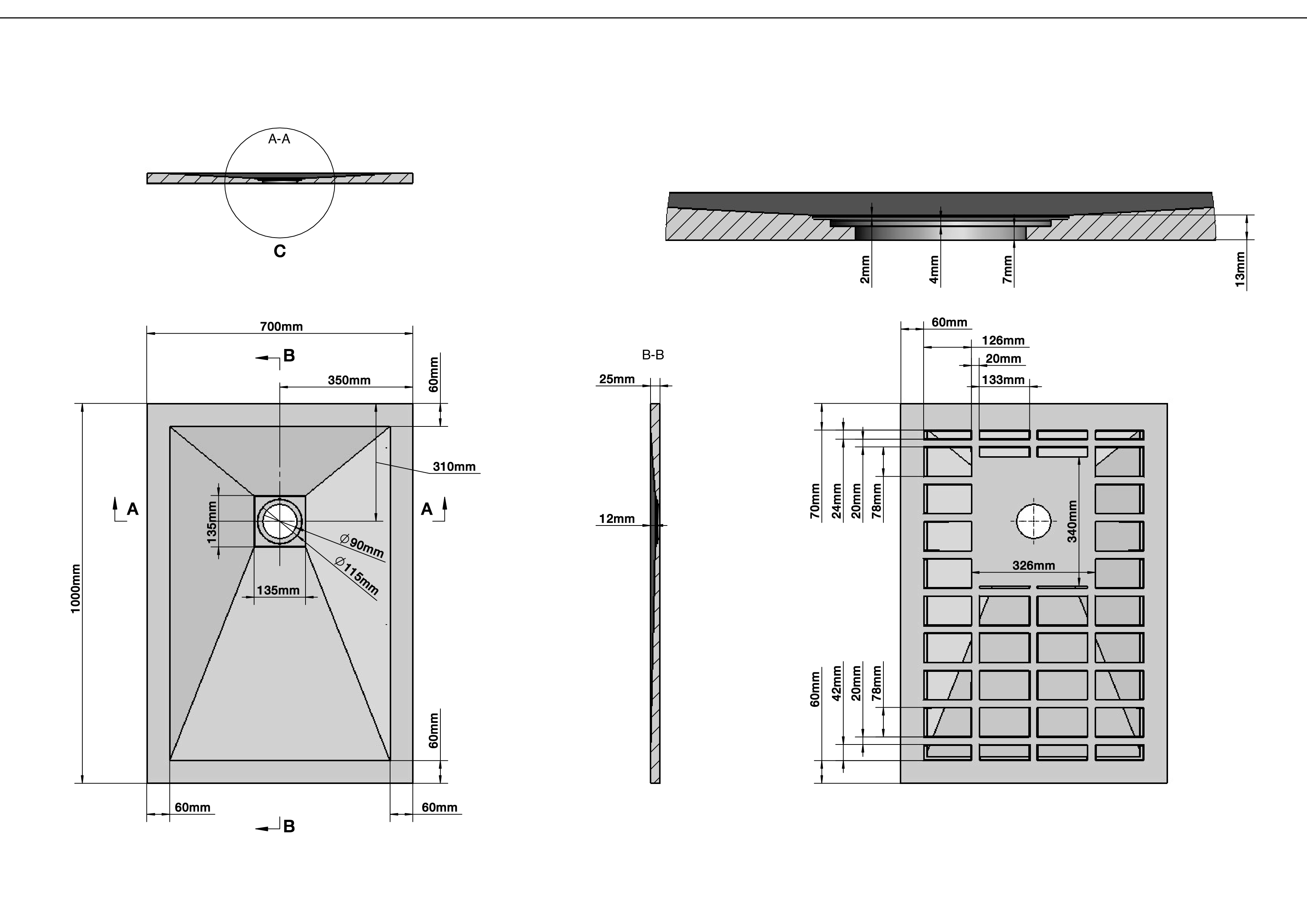 Поддон каменный прямоугольник графит (70*100*2,5) Strong GR-S270100Q Grossman