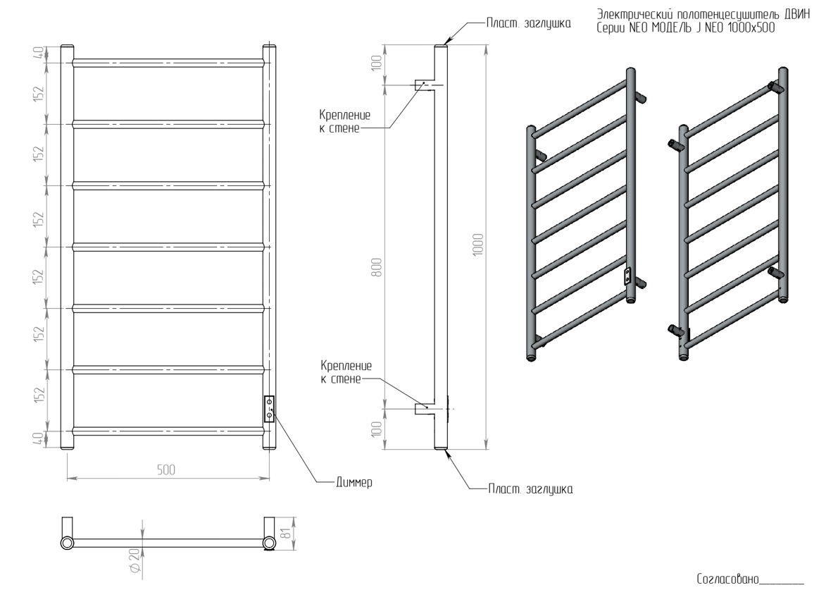 Полотенцесушитель ДВИН J neo 100/50 ЭлектрическийК диммер Чёрный матовый 4657763753450