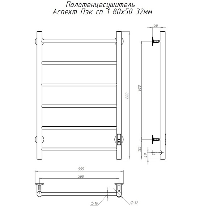 Полотенцесушитель электрический (лесенка) Тругор Аспект Пэк сп 1 80х50 см АспектПэксп1/8050 32
