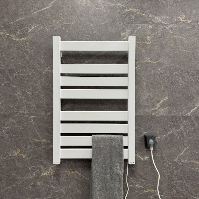 Эффективность обогрева: 210 Вт мощности достаточно для быстрого нагрева поверхности до комфортной температуры /55 °C, обеспечивая уют и сухость полотенец круглый год.