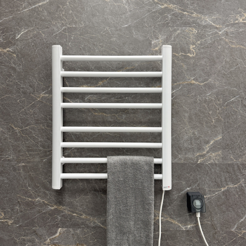 Эффективность обогрева: всего 93 Вт мощности достаточно для быстрого нагрева поверхности до комфортной температуры /55 °C, обеспечивая уют и сухость полотенец круглый год.