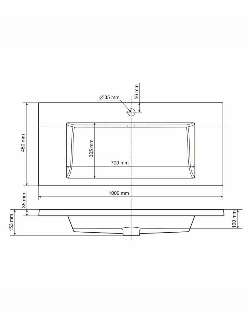 - Габариты, мм (ШхГхВ) - 1000х450х153