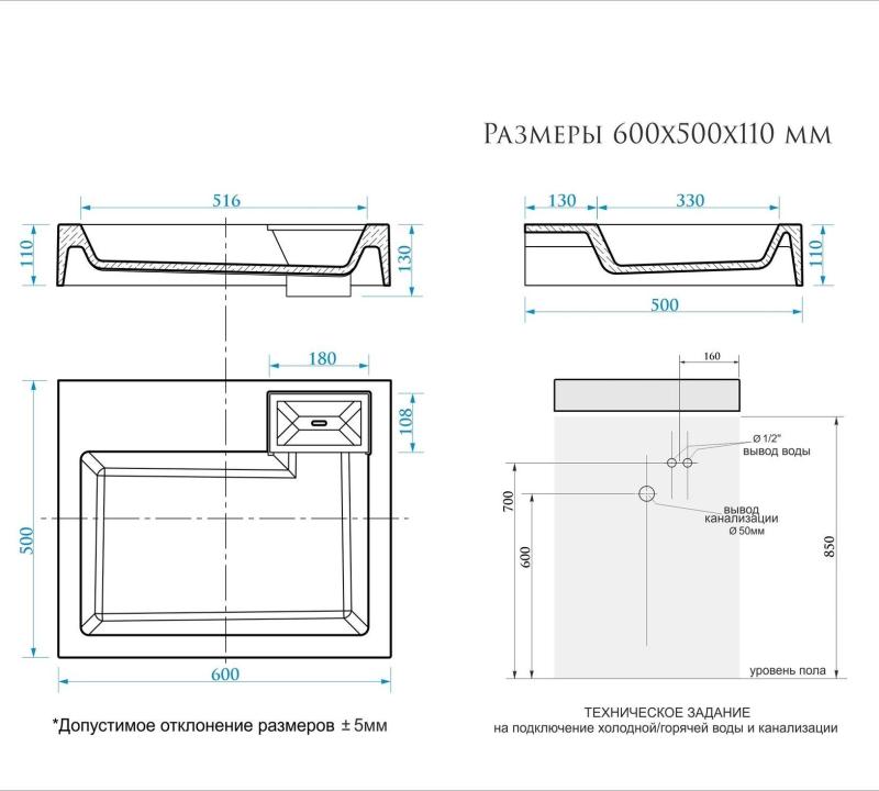 - Габариты, мм (ШхГхВ) - 600х500х110