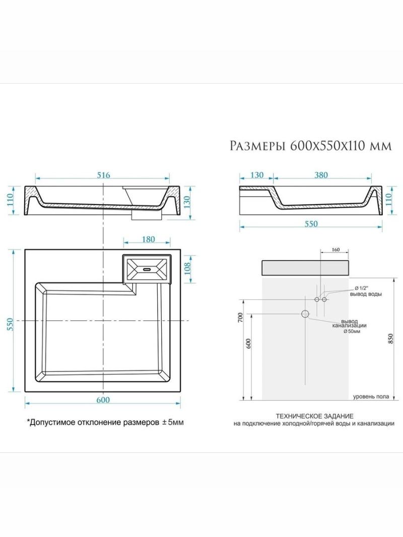 - Габариты, мм (ШхГхВ) - 600х550х110