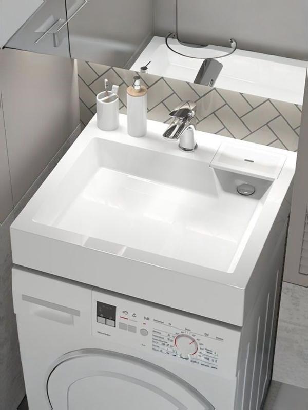 Раковины для установки над стиральной машиной от бренда Uperwood из коллекции Vission представлены в 3 размерах: 60х50 см, 60х55 и 60х60 см. Все раковины изготовлены из литьевого мрамора с покрытием гелькоут, которое выполняет как декоративную, так и защитную функцию.