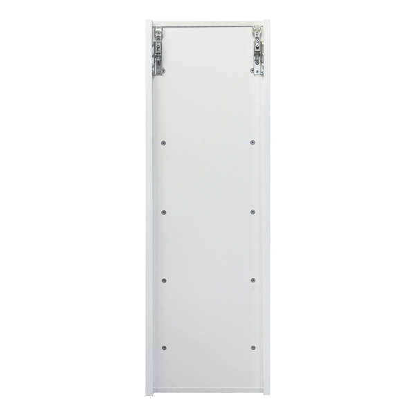 Корпус и фасад шкаф-колонны изготовлены из МДФ. Фасад шкафа фрезерован геометрическим узором с имитацией волны и окрашен белой матовой эмалью.