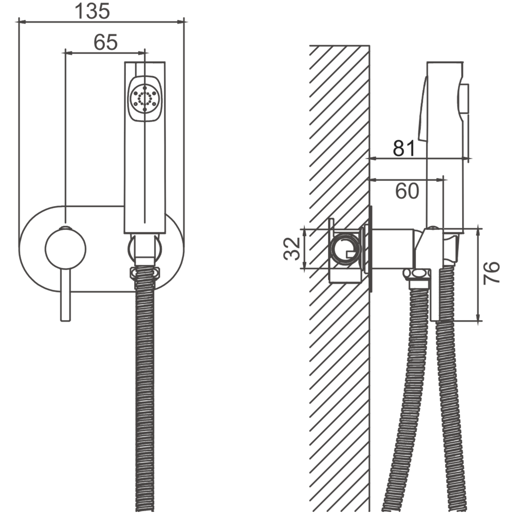 Смеситель, душевой шланг, гигиеническая лейка, держатель лейки, крепление.