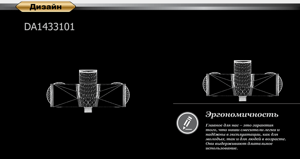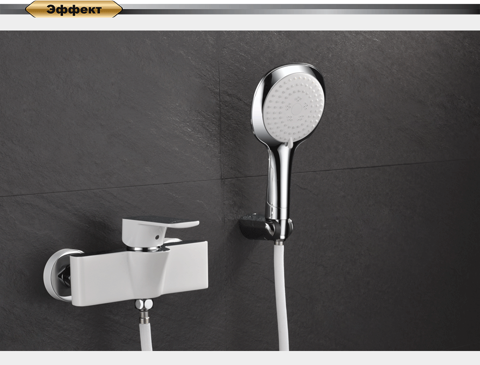 Смеситель, эксцентрики-2шт, декоративная шайба (отражатель)-2шт, шланг душевой, лейка душевая-3 режима, держатель душевой лейки, паспорт, брендовая сумка