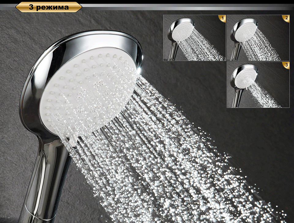 - Душевая трехрежимная лейка и шланг длиной 150 см уже в комплекте.