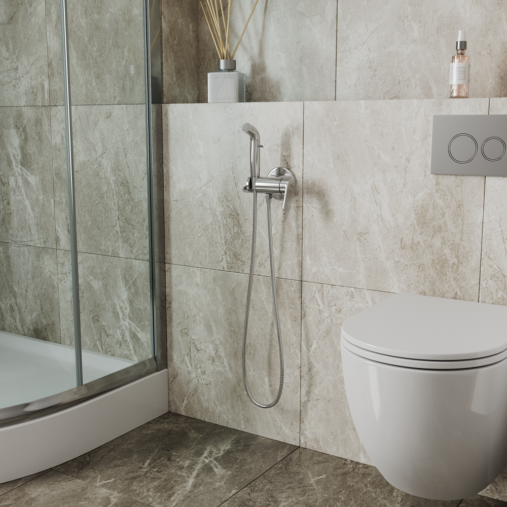 - В комплекте: душевой шланг | гигиеническая лейка | монтажный комплект | декоративная шайба | паспорт | брендовая сумка