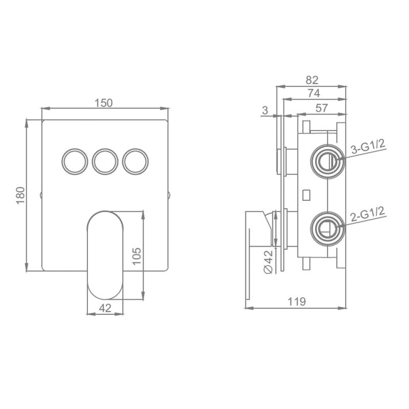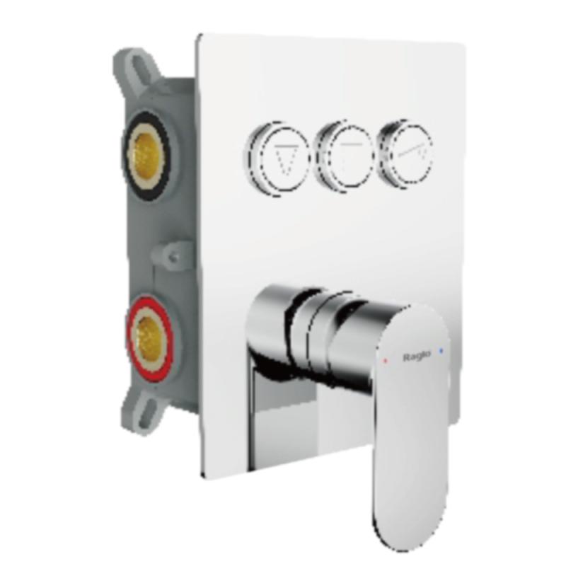 Корпус смесителя + внутренняя часть Raglo R50.273, 3-режима, хром. Встраиваемый монтаж. Керамический картридж 40 мм. Управление рычажное + кнопочное.