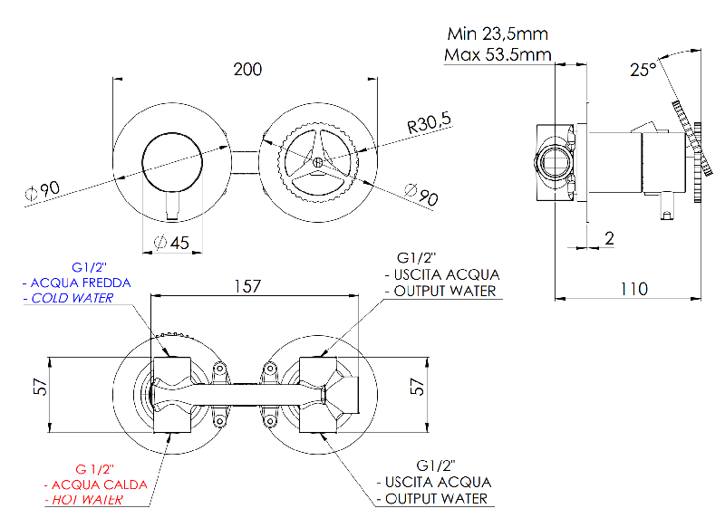 Смеситель для душа Remer Chrono CH93ZPBG, золото брашированное