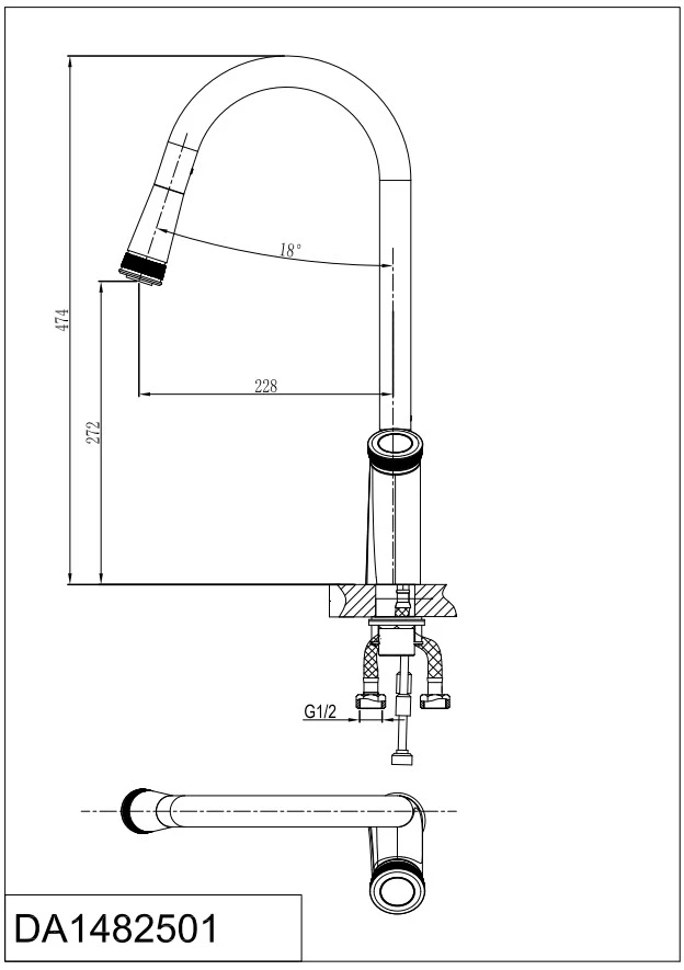 Смеситель для кухни с выдвижной лейкой D&K Bayern.Alfeld DA1482501