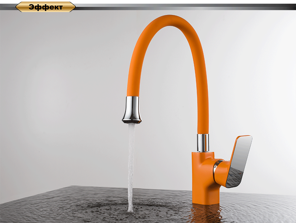 Строгие черты в дерзком оранжевом цвете подчеркивают индивидуальность каждой кухни. Ручка и излив правильно подобраны по размеру, для удобной повседневной эксплуатации на долгие годы.