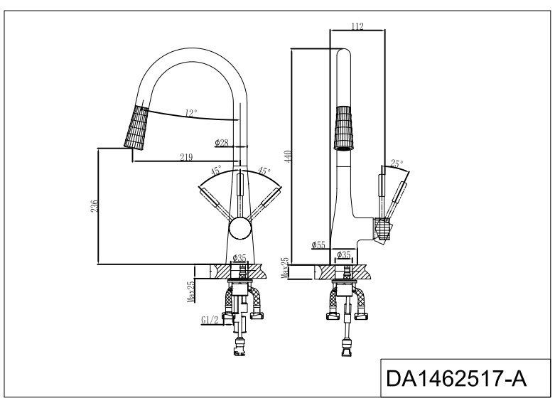 Смеситель для кухни с выдвижной лейкой D&K Rhein.Schiller DA1462517A